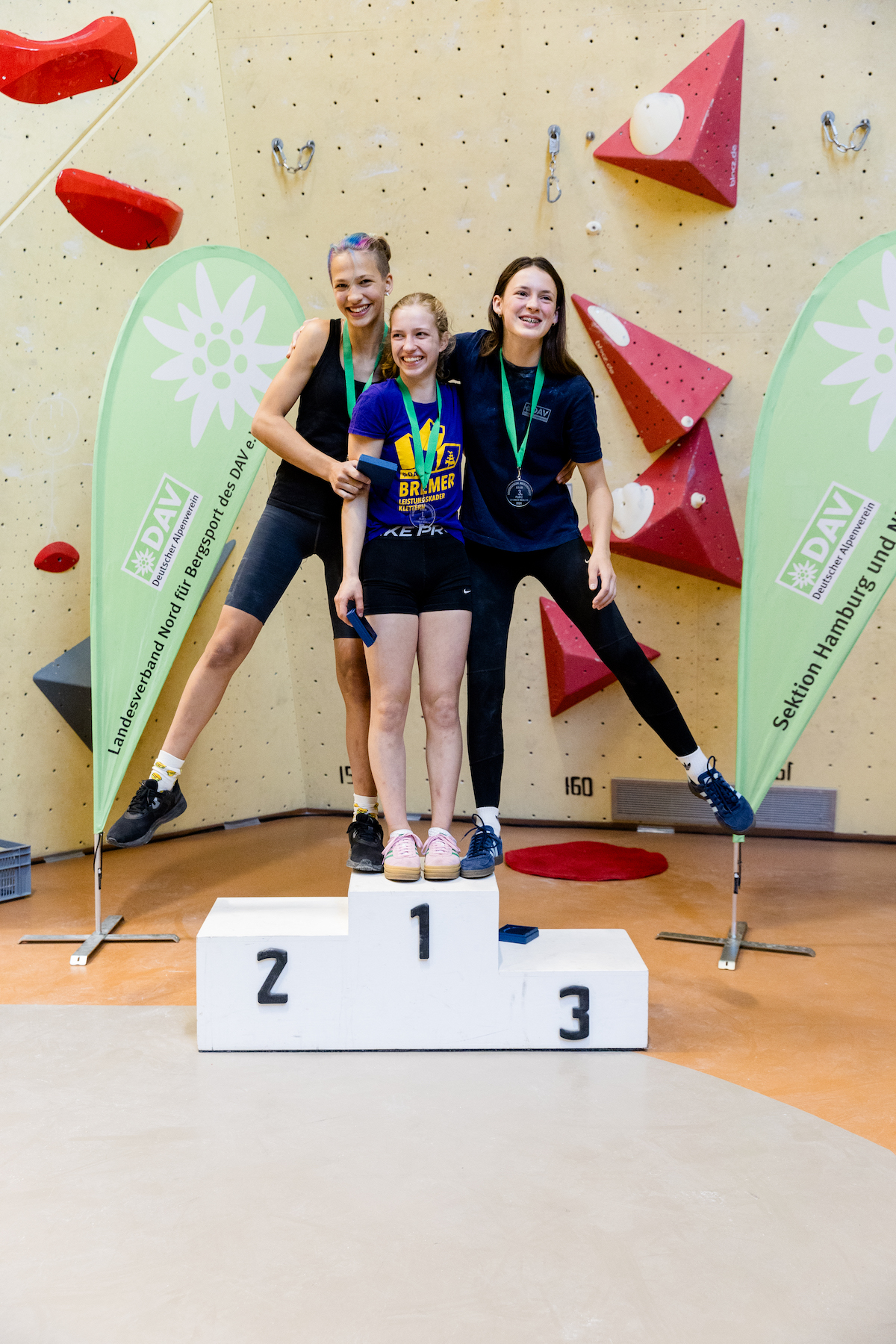 Die Norddeutschen Jugendmeisterschaft Ergebnisse in der Übersicht: Beim Bouldern in der weiblichen Jugend A erreichten Emma Gummert Platz 6 sowie Raika Bauks Platz 14; bei der männlichen Jugend A Maxim Welker Platz 13 und Bela Schätzler Platz 16. In der weiblichen Jugend B Ella Herz Platz 4 und bei der weiblichen Jugend C Miriam Mathees Platz 3 und Karl Harder Platz 2 bei der männlichen Jugend.