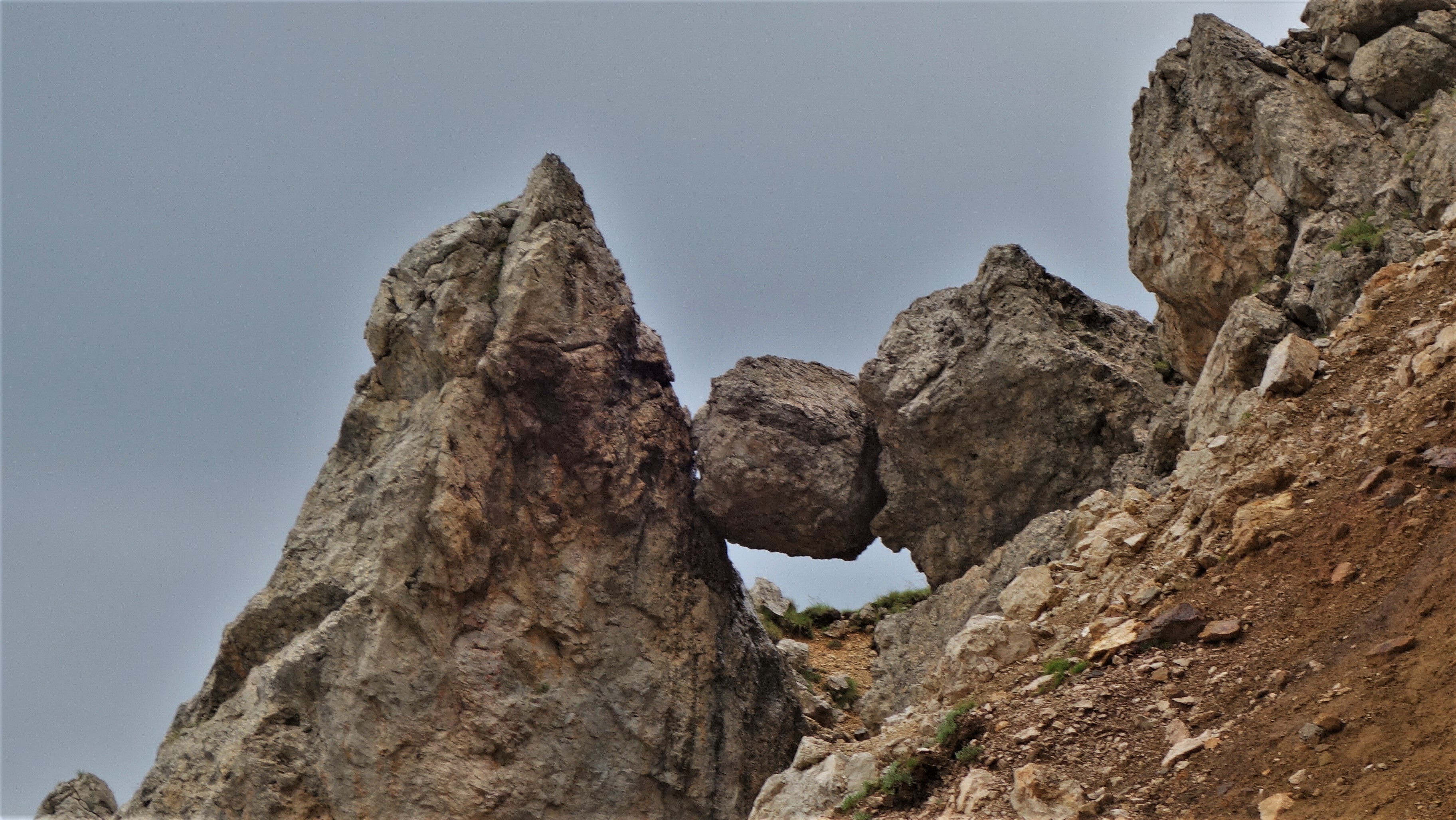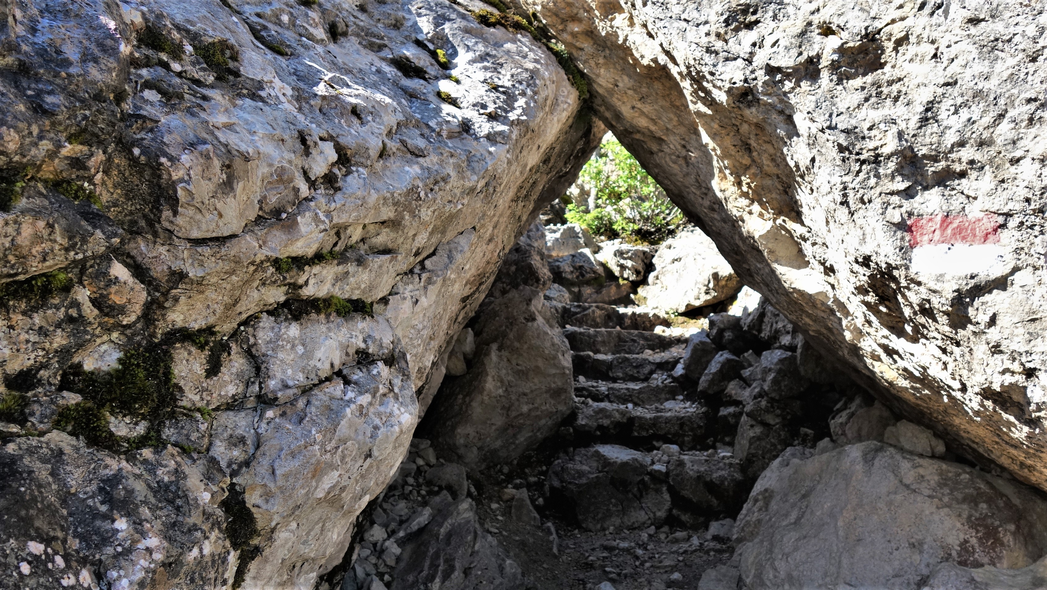 Am 5. Tag der Wanderung (ATG3-22) zweigt vom Rifugio Vajolet kommend rechts der Pfad mit einem besonderen Einstieg (Hamburger Tor) als üblicher Bergpfad zum Passo della Zigolade (2547 m) ab. Aufgrund der Wetterlage ist eine alternative Strecke - einige Passagen sind durch Wasserstürze schwierig zu durchwandern - um die Gipfel "Le Zegolade und Pale Rabbiose" herum zur Rotwandhütte mit zartem Edelweiß am Wegesrand möglich. (Die Gehzeiten im Vergleich zum Passo della Zigolade sind sehr ähnlich.) Eine Einkehr ist in der Rotwandhütte passend zur Pausenzeit. In den unteren Baumbeständen sind viele Bäume auf den Weg gefallen, was zu sportlichen Übungen führt, wobei auch Hosennähte aufreißen können. Danach wird es wieder wasserreicher und die Wiesen sind mit Türkenbund versetzt. Die Latschenkiefern duften hier besonders stark. Der Sky Marathon ist auch auf dieser Strecke mit "Plastik Fahnen" ausgesteckt. Dieser Weg bietet auch wieder einen Panoramablick auf das Latemar Gebirge bis hin zum Karerpass.