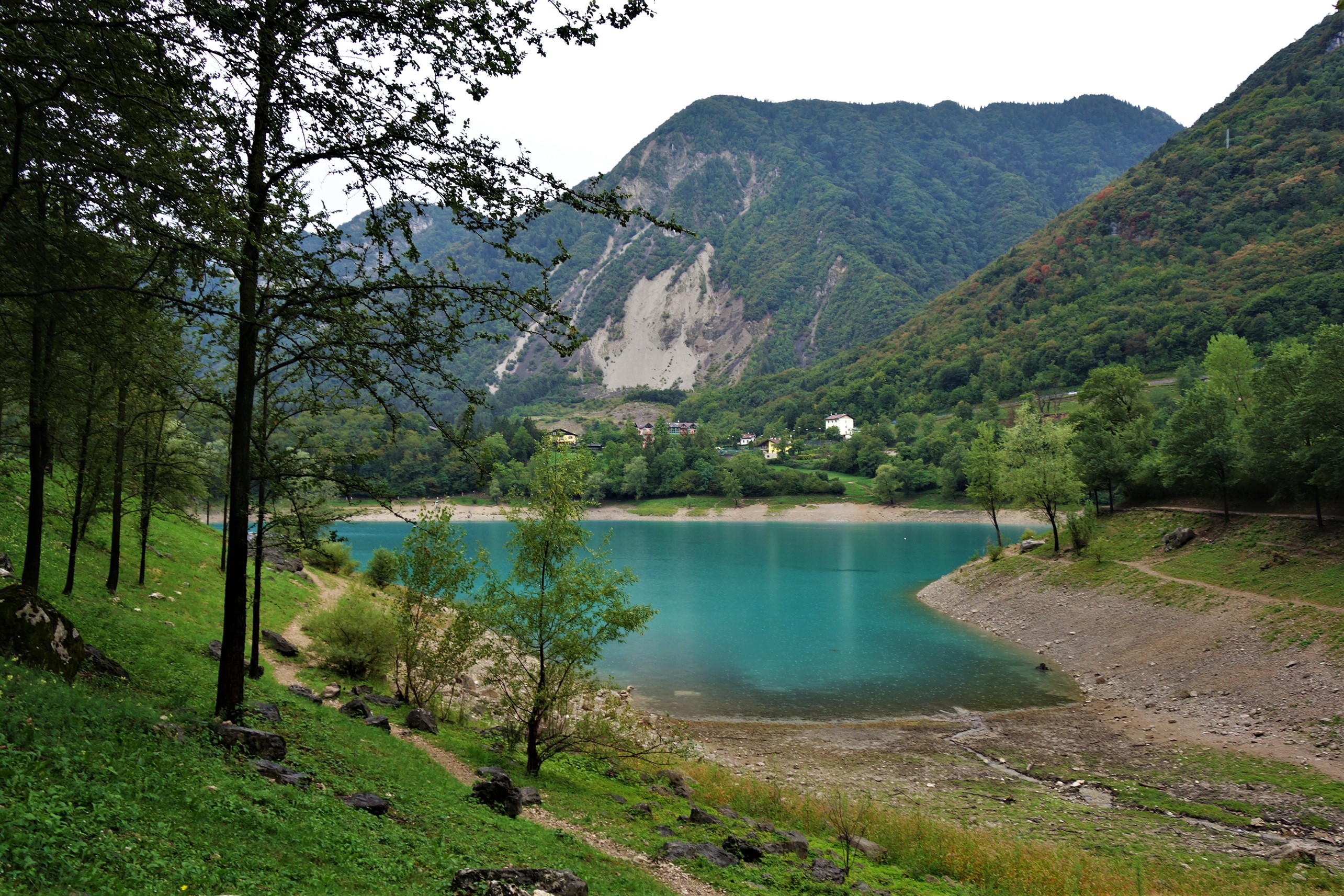 Am 7. Tag (ATG4-34) wandert man von Madice (Maso pra Cavai) zum Tenno See mit einer Pause in Ballino. Plantagen sind hier aus Kastanien- und Maronenbäume kurz vor Tenno zu finden, was aber Privatbesitz ist. Wie in diesem Sommer üblich, war der Wasserstand des Tenno Sees auch um einiges niedriger als sonst. Der Regen an dem Tag konnte das grün blaue Wasser im See nicht auffüllen.