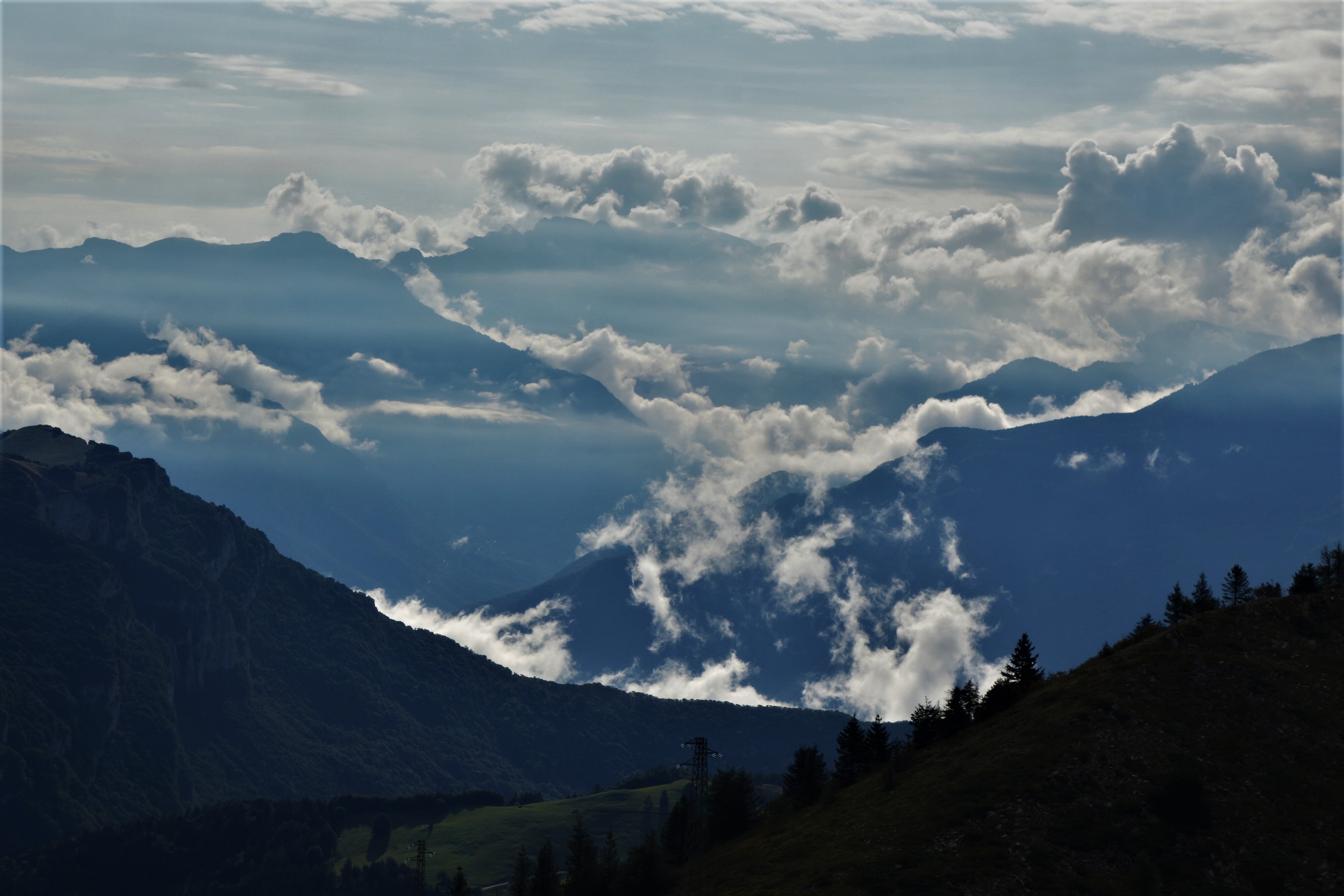 Der 1. Tag (ATG4-28 der Gesamtetappen) beginnt mit der Nutzung der Regionalbahn – kostenlos, wenn man die Trentino Card im Hotel bekommt. Der Weg (14 km) vom Bahnhof Lavis führt ca. 30 Minuten auf Straßen und an Obstplantagen (Äpfel, Weintrauben) entlang, danach durch Wald mit dem besseren Klima. Hier befindet sich schon die erste hilfreiche, seilgesicherte Stelle auf dem Weg nach oben. Santel ist ein Mountainbiker Paradise, was aber rücksichtsvoll gehandhabt wird, und auch mit Wanderern sich begehen lässt sowie auch einen ersten Blick auf die Brenta ermöglicht. Wir kommen in dem gepflegten Wintersportort Andalo an.