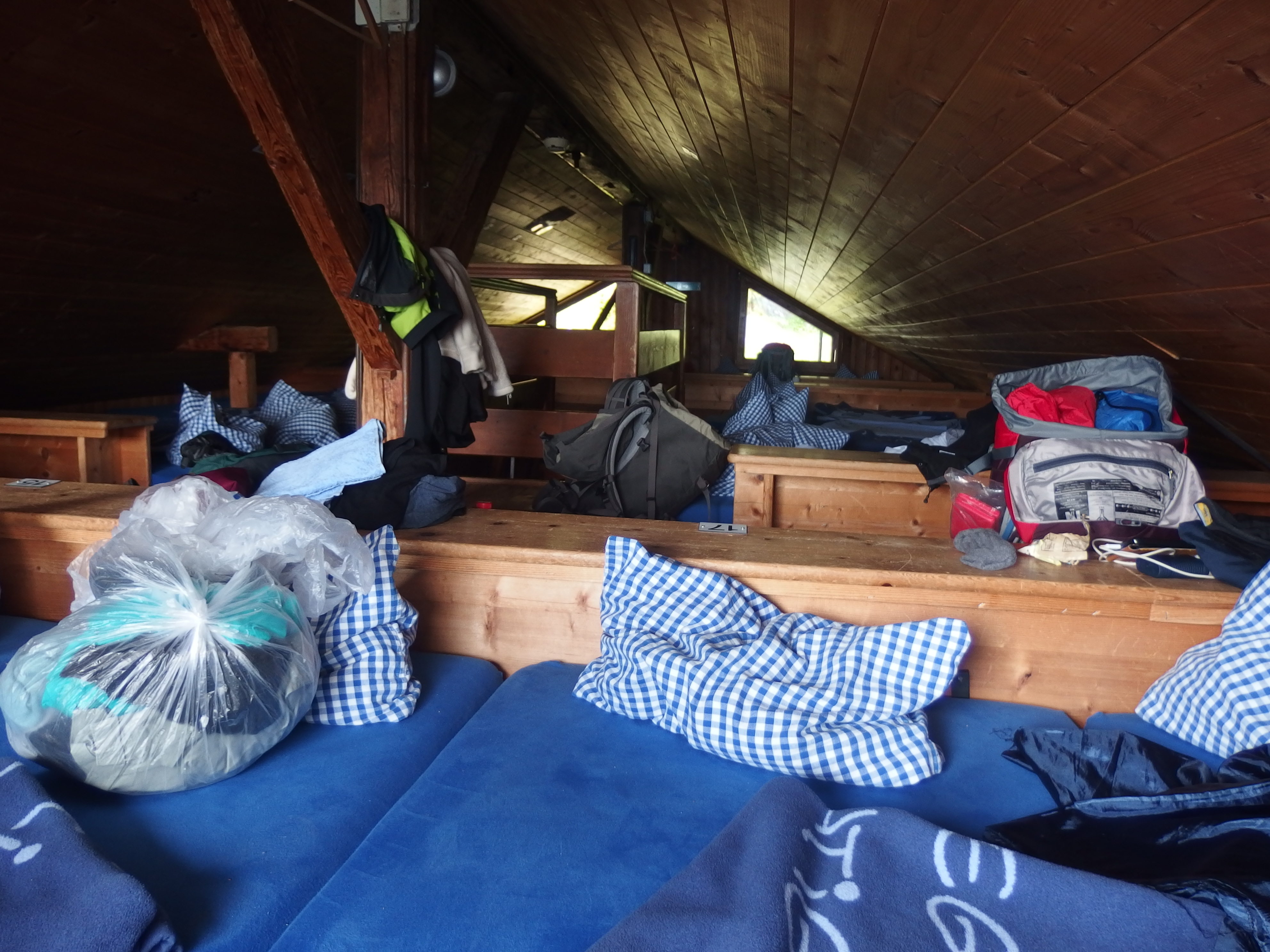 Die Wetter-App hatte für die ganze Woche nichts Gutes versprochen. Und sie hatte Recht, aber nur am zweiten Tag. Nach einem guten Hüttenfrühstück geht es bei strömendem Regen auf die zweite Etappe. Unser Ziel ist das Anton-Karg-Haus in Hinterbärenbad. Regenkleidung und Regenschirme müssen ihre Tauglichkeit beweisen. Mittags hört es auf und ab dem dritten Tag haben wir Sonne von früh bis spät. Auch im Anton-Karg-Haus sind wir fast unter uns, auch hier sind die Zimmer gemütlich und das Haus liebevoll eingerichtet. Nach dem langen Marsch auf dem Bettlersteig und durch teilweise rutschiges Gelände tut die warme Stube gut und das Essen ist reichlich und lecker.