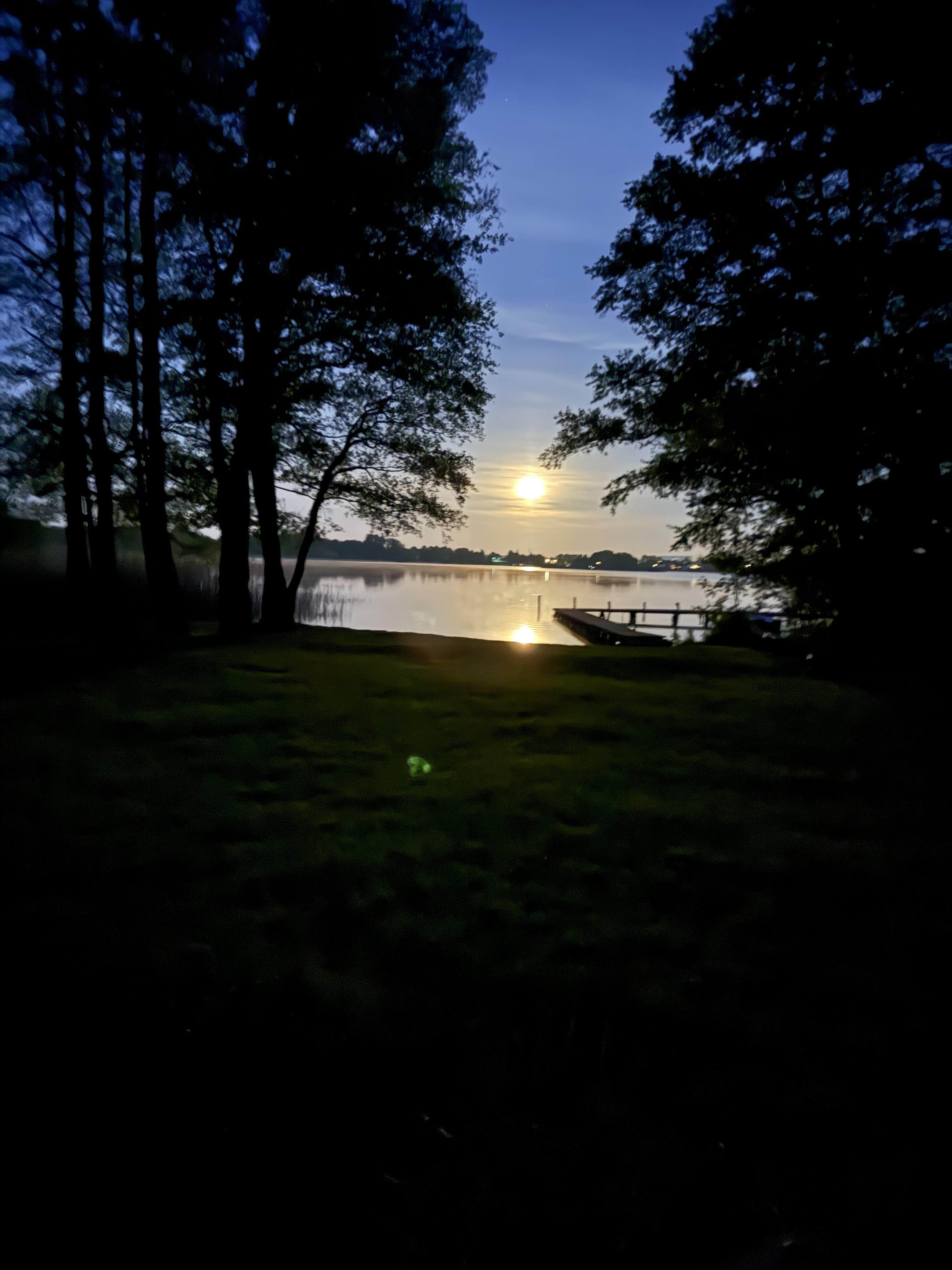 Zu viert gehen wir die restlichen 7 km, zum Schluss wieder am Ufer des Schaalsee. Um 3.45 will uns auch der Mond nicht mehr leuchten und verabschiedet sich über dem Schaalsee. Gegen 4:20 Uhr in der Morgendämmerung erreichen wir wieder unseren Ausgangspunkt in Zarrentin. Susanne holt mit ihrem Auto noch Lisa ab und so sind -trotz einiger Blessuren- alle wieder sicher zu Haus angekommen.