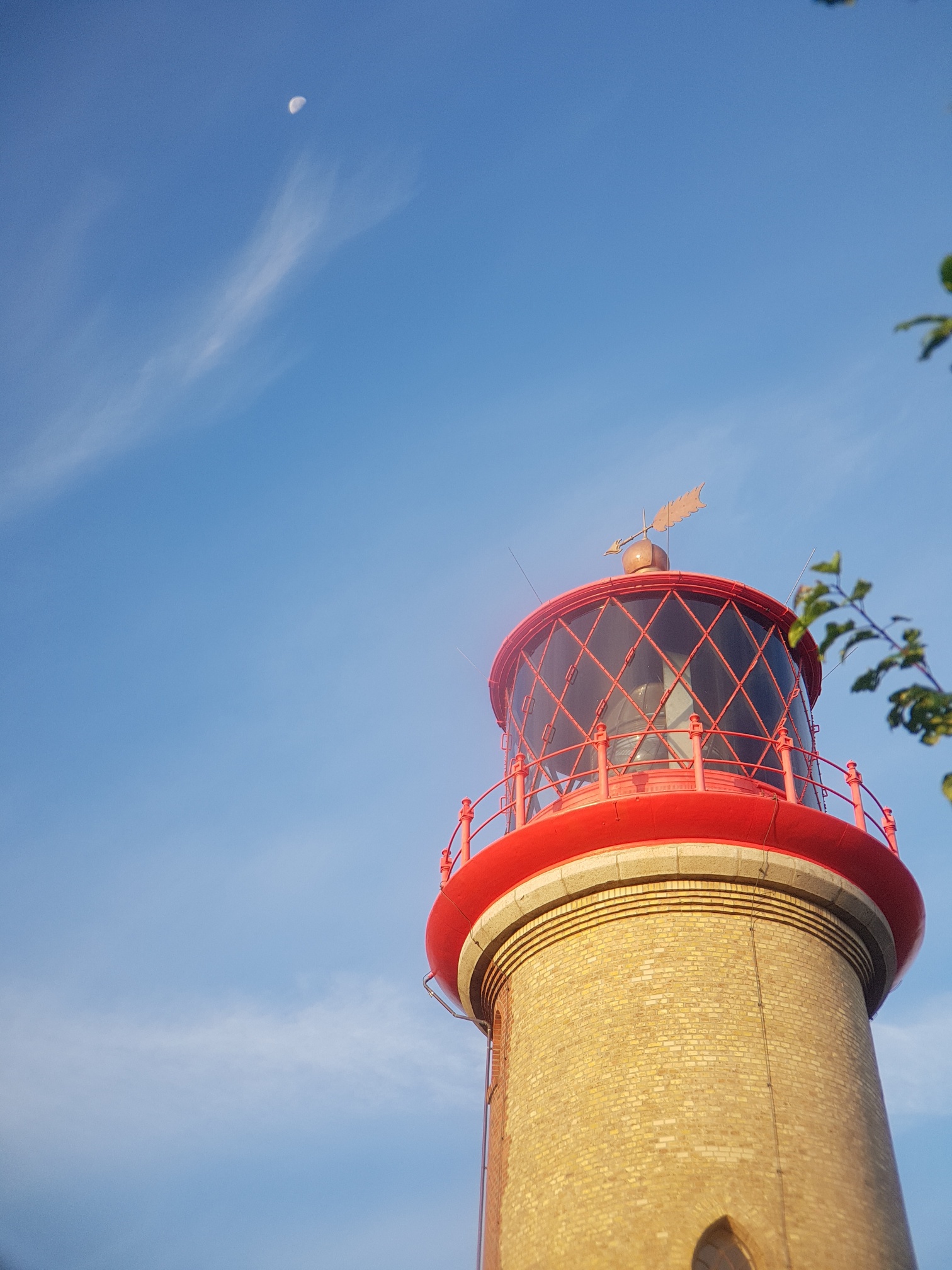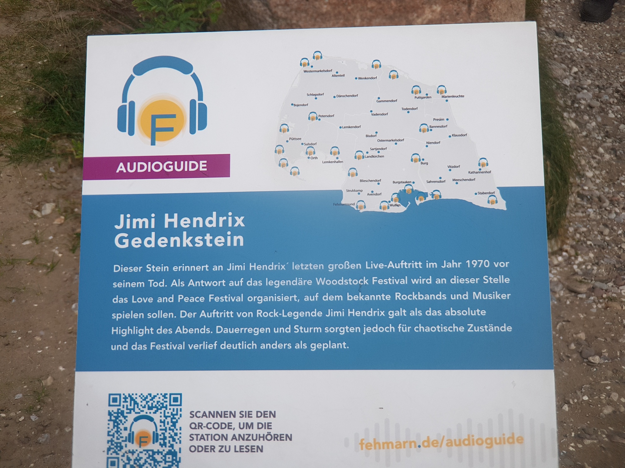 An der Nordwestecke dreht sich unsere Wanderrichtung wieder nach Süden und wir blicken auf ausgedehnte Salzwiesen. Vorbei am Jimi Hendrix Gedenkstein und am Flügger Leuchtturm freuen wir uns auf die 50km-Pause am Hafenkiosk in Orth. Danach überrascht uns allerdings ein unerwartet heftiger Regenschauer.