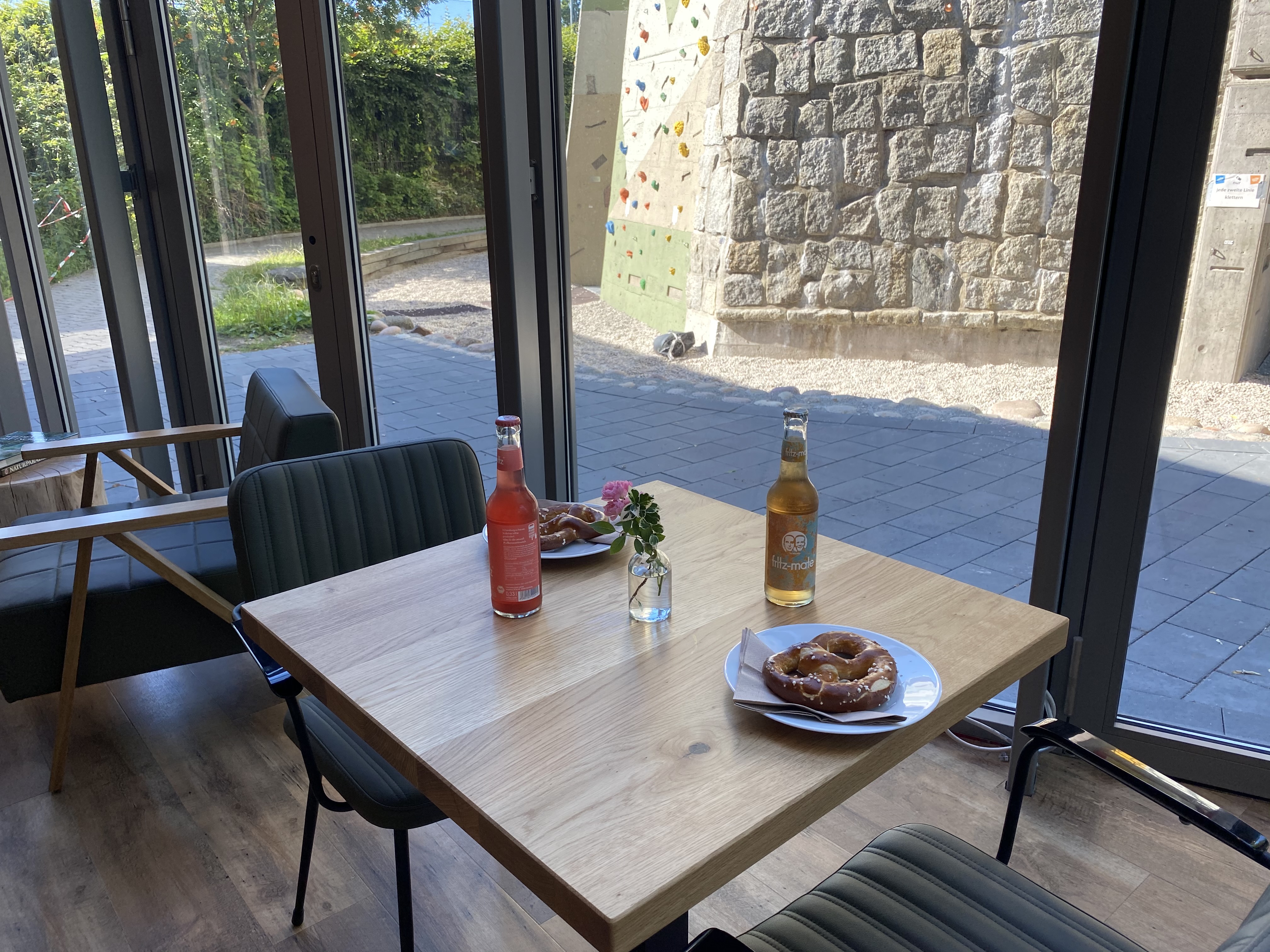 Ob vor dem Klettern einen schnellen Kaffee trinken und eine frische Brezel essen, um Energie zu tanken oder danach mit dem/der Kletterpartner*in noch mal eine Pizza und ein Kaltgetränk zu genießen und dabei die nächste Tour planen - all das kannst du in unserem Edelweiß Bistro.