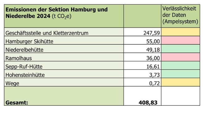Ein wesentlicher Einflussfaktor waren die im Jahr 2024 durchgeführten Bauarbeiten, die Druckwasserrohrleitung auf der Niederelbehütte sowie der Einbau der inklusiven Sanitäranlage im Kletterzentrum. Darüber hinaus wurde festgestellt, dass der Fleischkonsum auf der Niederelbehütte in der Vorjahresberechnung unterschätzt wurde. Da Fleisch einen hohen Emissionsfaktor aufweist, führt die Anpassung zu einem deutlichen Anstieg der Emissionen. Nach der verbesserten Datenerhebung 2024 konnten die Schätzwerte für die Hütten von 2023 präzisiert werden. Die Emissionswerte der Hamburger Skihütte und des Ramolhauses wurden folglich auch nach oben angepasst. Somit ist der Anstieg der Emissionen 2024 vor allem auf eine verbesserte Datengrundlage und die Baumaßnahmen zurückzuführen.