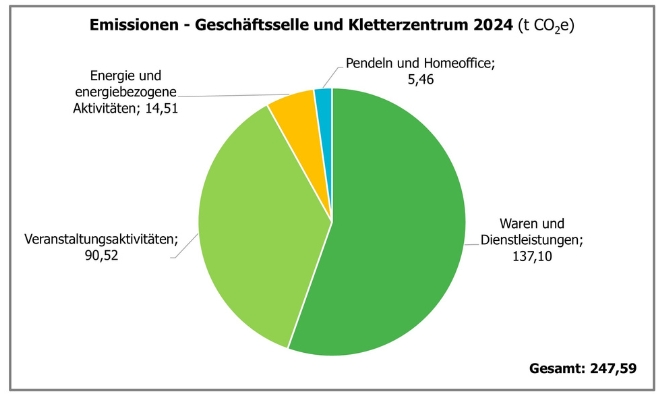 Die Geschäftsstelle und das Kletterzentrum werden als ein Standort zusammengefasst. Hier wurden 2024 247,59 t CO₂e verursacht.