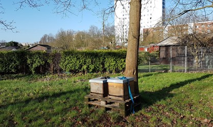 Diese Verbindung wird nun mit dem Einzug von zunächst zwei und später weiteren zwei Bienenköniginnen und ihren Völkern gekrönt. Seit dem 17. April 2018 sind die fleißigen Bienen in unserer näheren Nachbarschaft in den Kleingärten unterwegs und bestäuben Blüten, sammeln Nektar und helfen fleißig bei der Produktion von Honig.