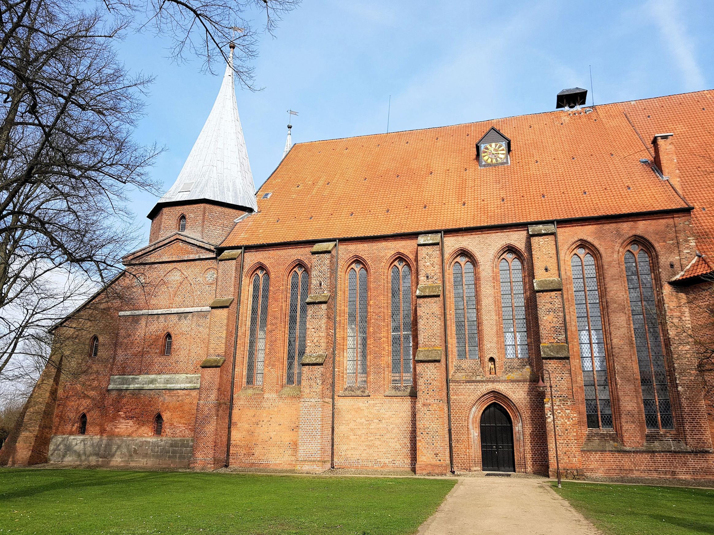 Gemeinsam gehen wir am Ratzeburger Dom vorbei in die nächste 30km-Runde Richtung Rehna, den nächsten „Eckpunkt“ im Klosterdreieck und die Endstation für die Tagestour. Vorbei am Mechower, Lankower und Röggeliner See erreichen wir gegen 18.40 das Kloster Rehna. Hier gab es zu unserer Überraschung nicht nur den angekündigten Getränkenachschub, sondern ein üppiges Kofferraum-Büfett. Organisiert von Stefanie und ihrem Mann. An dieser Stelle noch einmal herzlichen Dank für diesen Kraftnachschub (auch psychologischer Art!).