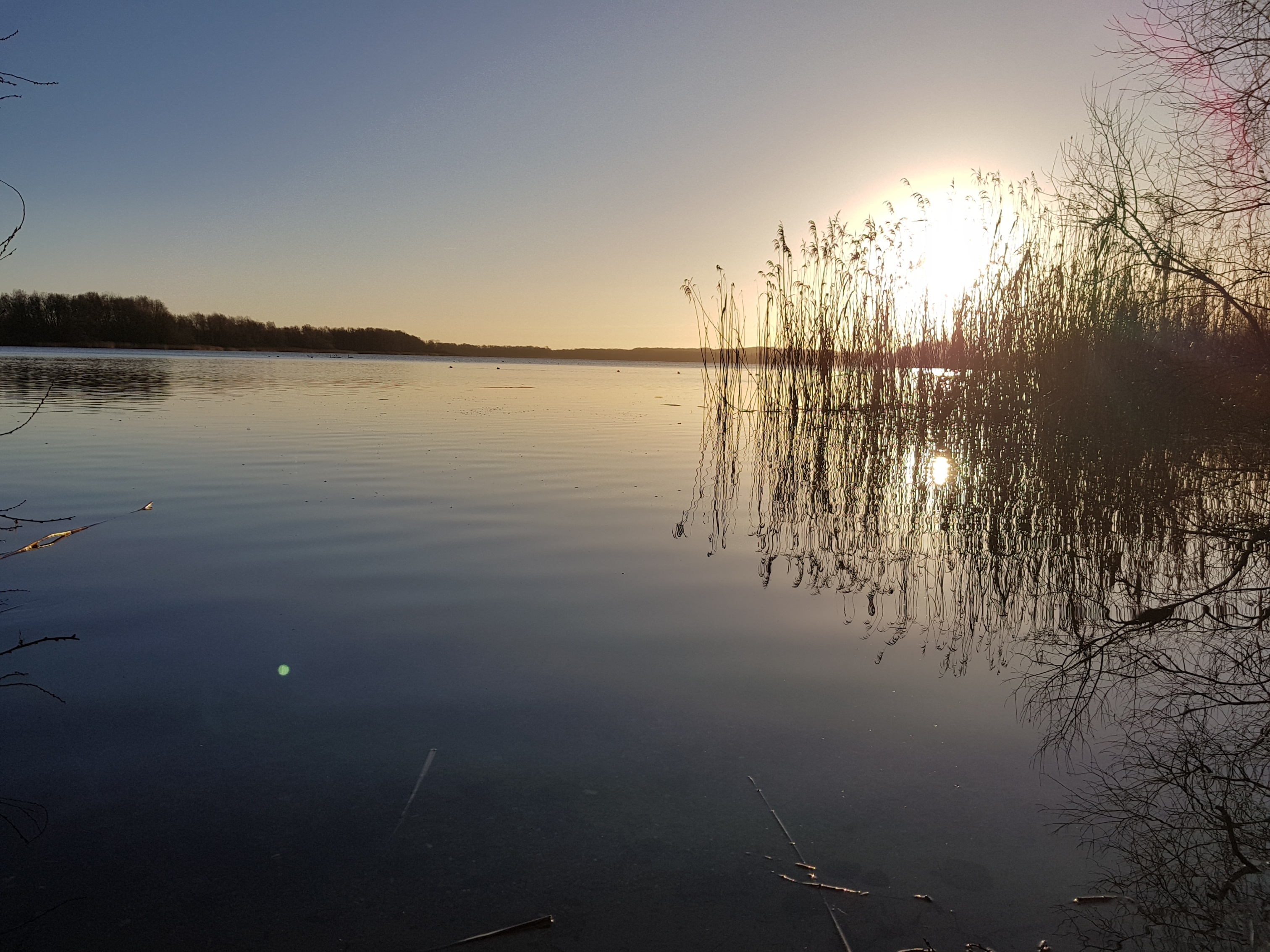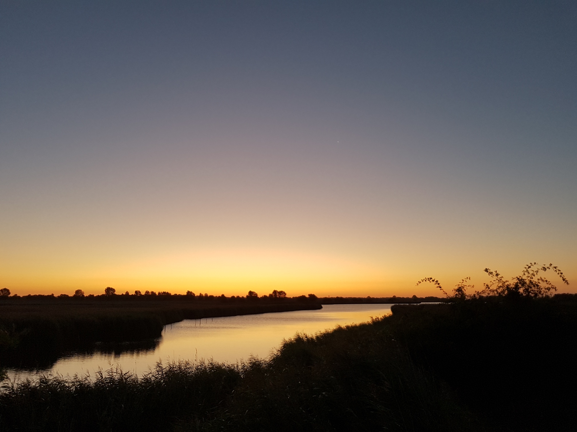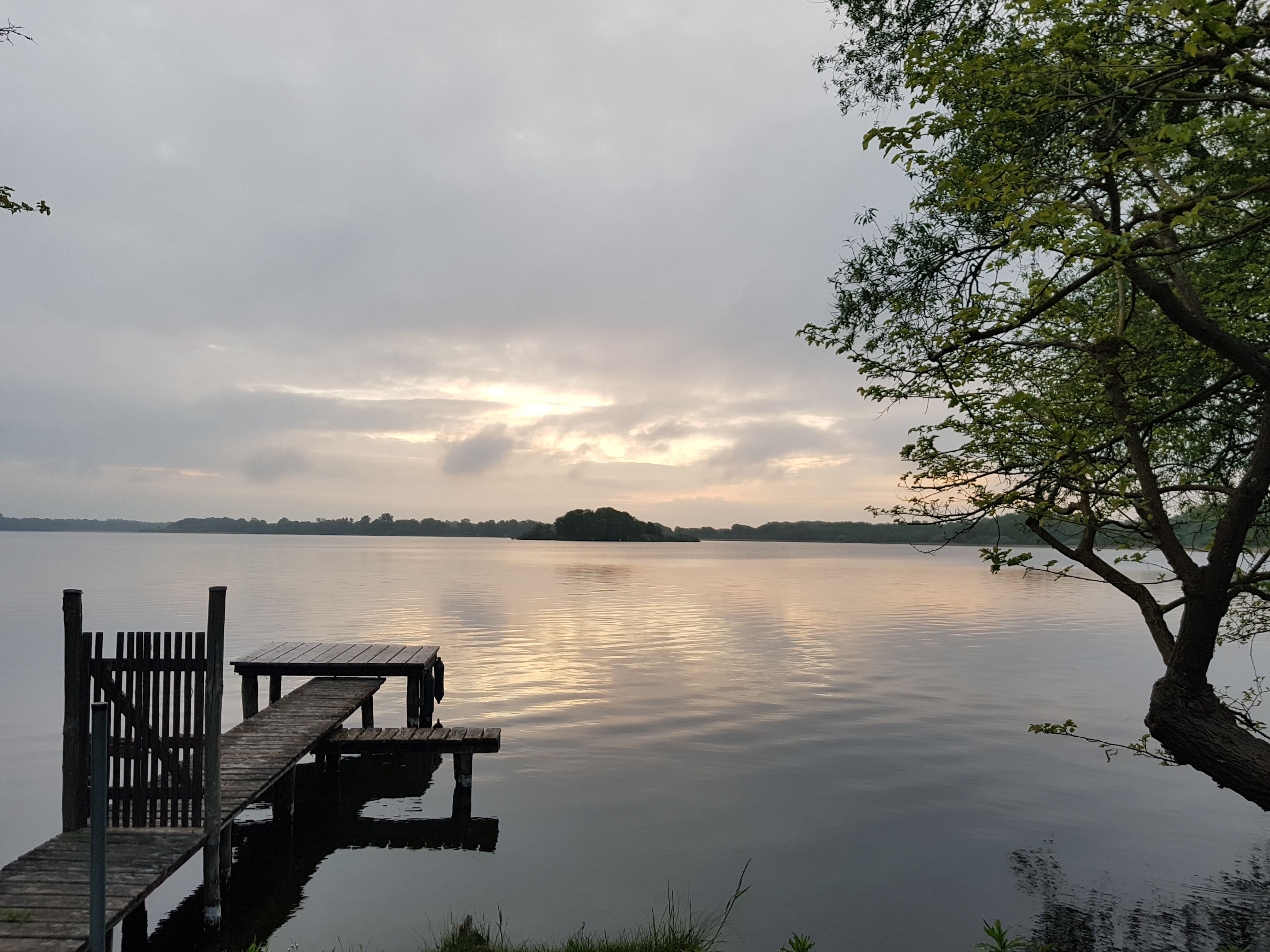 Zu viert gehen wir die restlichen 7 km, zum Schluss wieder am Ufer des Schaalsee. Um 3.45 will uns auch der Mond nicht mehr leuchten und verabschiedet sich über dem Schaalsee. Gegen 4:20 Uhr in der Morgendämmerung erreichen wir wieder unseren Ausgangspunkt in Zarrentin. Susanne holt mit ihrem Auto noch Lisa ab und so sind -trotz einiger Blessuren- alle wieder sicher zu Haus angekommen.