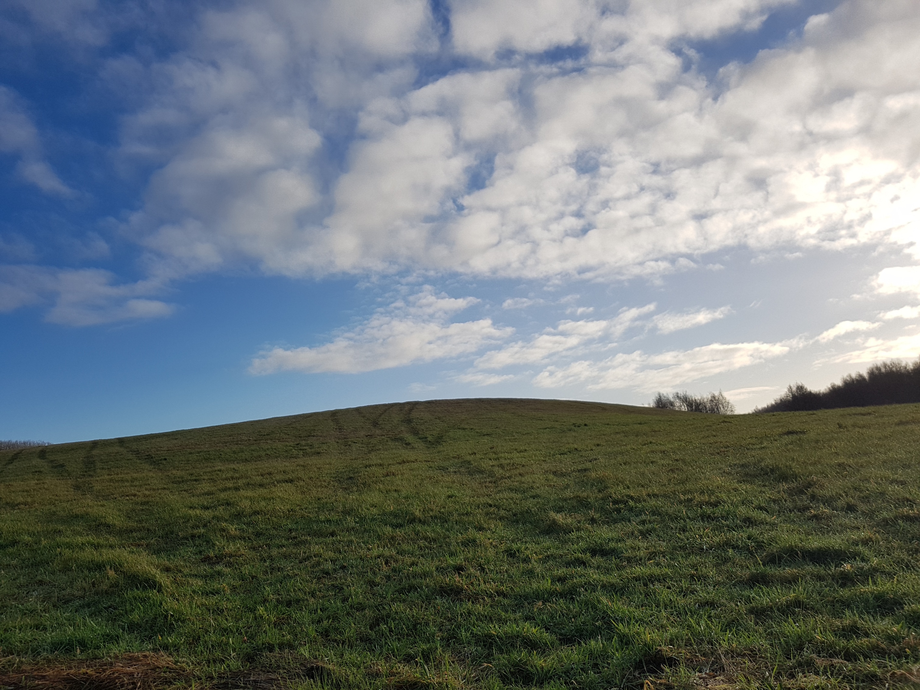 Yeah, 50 km, Hälfte ist geschafft – hm, erst die Hälfte??? Meine Beine! Warum fühlt sich mein rechter Oberschenkel so hart an? Liegt das an der Ferse? Zieht das von unten nach oben? Marschiere ich schon in schräger Stützhaltung, weil meine Ferse wundscheuert? Können wir nicht mal kurz stehen bleiben für ´ne Trinkpause? Ach, haben wir eben schon gemacht?! Stimmt ja, hab´ ich schon verdrängt. Wann sind wir denn am Ende der Tagestour – das muss doch schon lange soweit sein?! Da hinter der Biegung? Wieso kommen da noch zwei Biegungen? Und der lange Feldweg da auch noch??