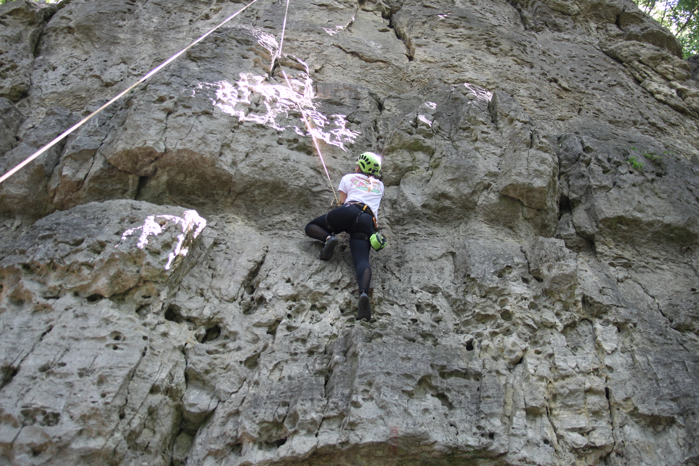 | Ausrüstung | Helm, Kletterschuhe, Gurt, Sicherungsgerät und Abseilgerät, 3 Verschlusskarabiner, 60cm Bandschlinge, Seil 60m (zu zweit)