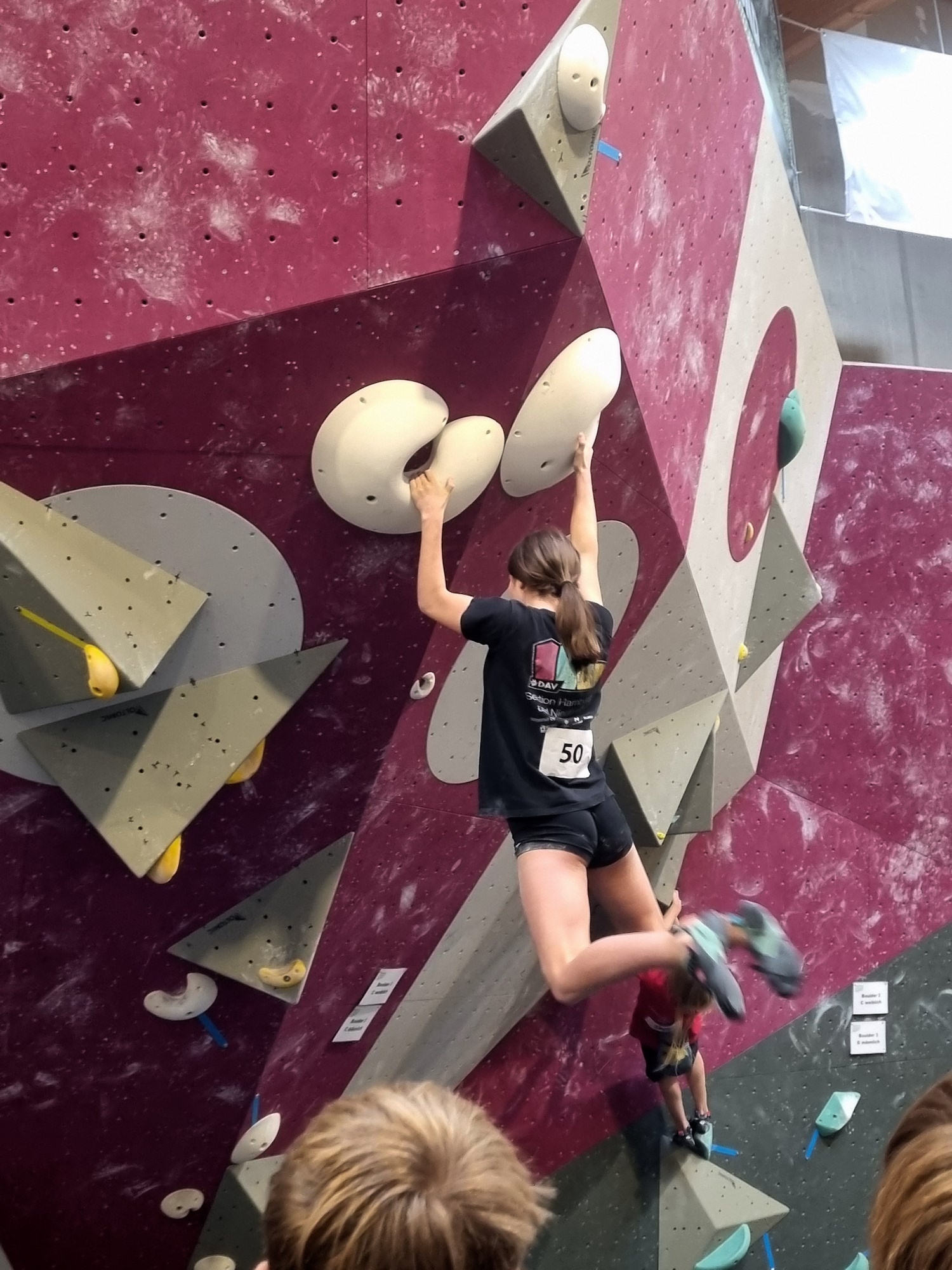 Hervorzuheben sind zudem Surya Cornelius (14) und Alessandro de Paolis (12) die aufgrund ihrer tollen Trainingsleistungen einige der wenigen Starterplätze im Bouldern, Lead und Speed bekamen und sich ebenfalls beweisen durften. Soviel vorweg, beide haben ebenfalls die Chance zur Aufnahme in den Landeskader und sind zur Sichtung eingeladen. Ebenso wurden zwei Kids, Lotta Mehrländer (10) und Lori Stolz (10), vom Landeskader zum Kennenlernen eingeladen - Glückwunsch.