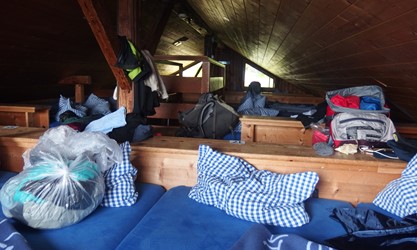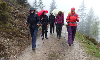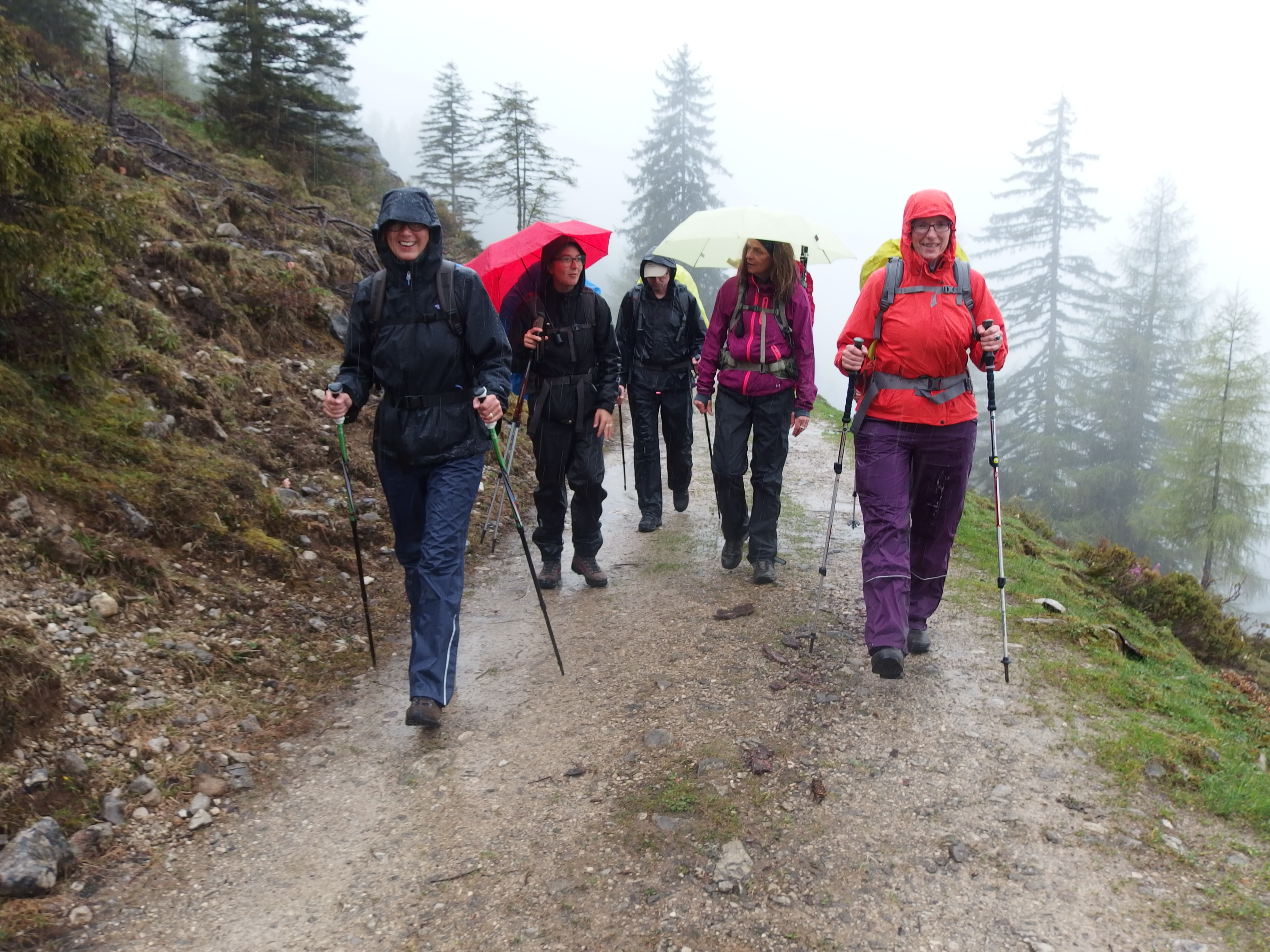 Die Wetter-App hatte für die ganze Woche nichts Gutes versprochen. Und sie hatte Recht, aber nur am zweiten Tag. Nach einem guten Hüttenfrühstück geht es bei strömendem Regen auf die zweite Etappe. Unser Ziel ist das Anton-Karg-Haus in Hinterbärenbad. Regenkleidung und Regenschirme müssen ihre Tauglichkeit beweisen. Mittags hört es auf und ab dem dritten Tag haben wir Sonne von früh bis spät. Auch im Anton-Karg-Haus sind wir fast unter uns, auch hier sind die Zimmer gemütlich und das Haus liebevoll eingerichtet. Nach dem langen Marsch auf dem Bettlersteig und durch teilweise rutschiges Gelände tut die warme Stube gut und das Essen ist reichlich und lecker.