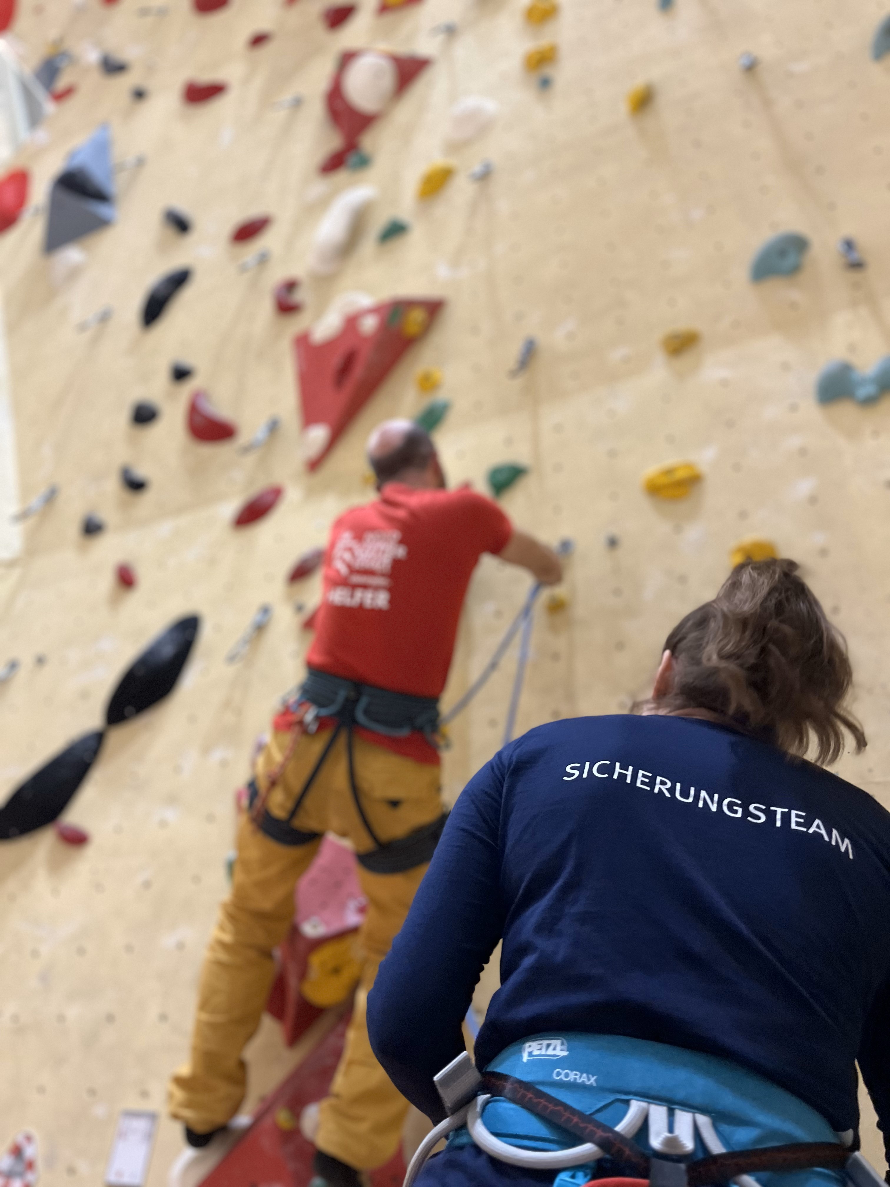 Wir trainieren gemeinsam das sichere und routinierte Sichern, insbesondere für Wettkampfsituationen.