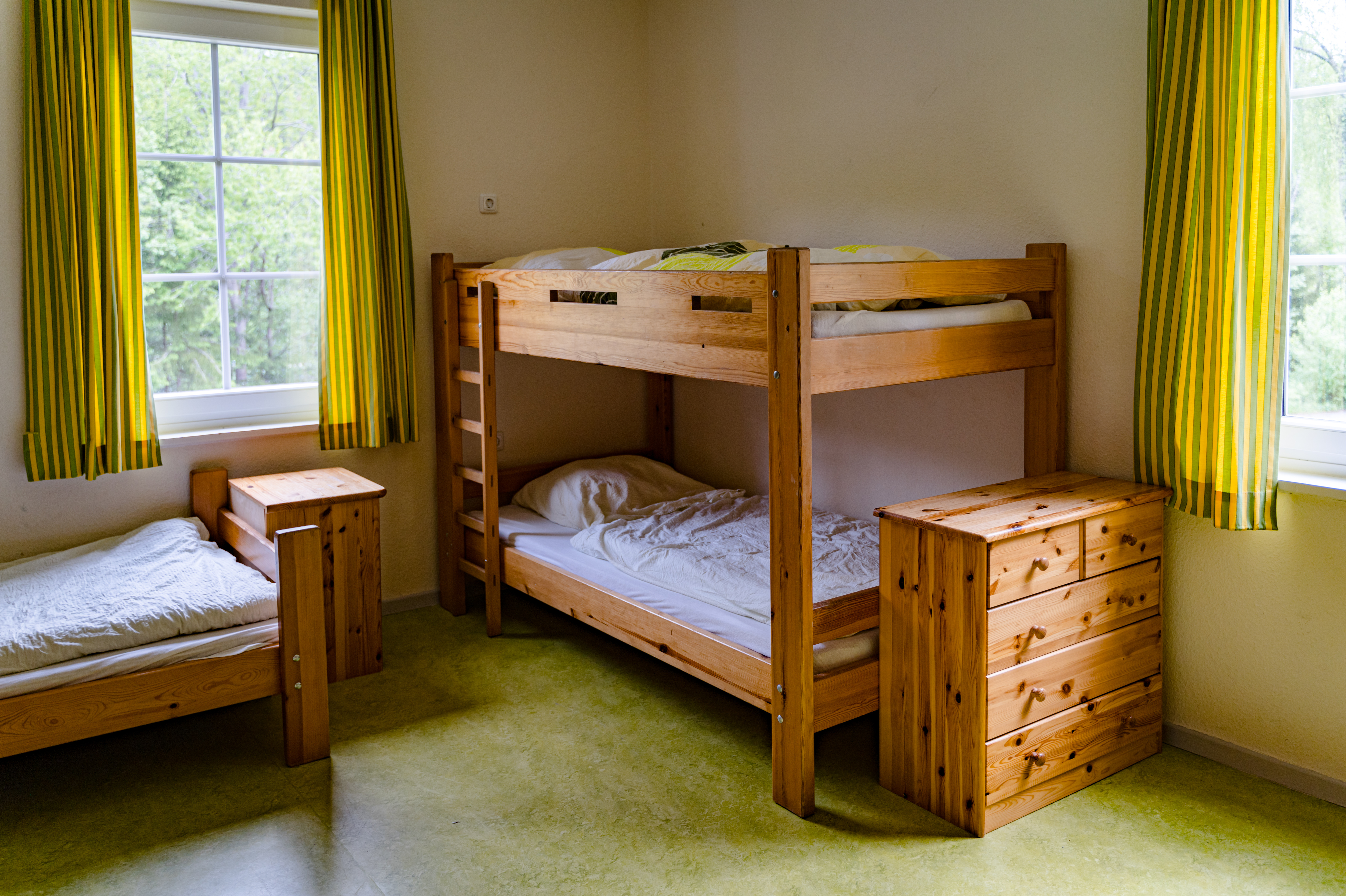 Insgesamt 39 Betten verteilen sich auf 2-, 4- und 6-Bett-Zimmer, die alle beheizbar sind. Solltest du ein Bett in einem Mehrbettzimmer buchen, kann es vorkommen, dass du das Zimmer mit weiteren Gästen teilst. Eine gleichgeschlechtliche Belegung der Zimmer kann von uns nicht gewährleistet werden.
