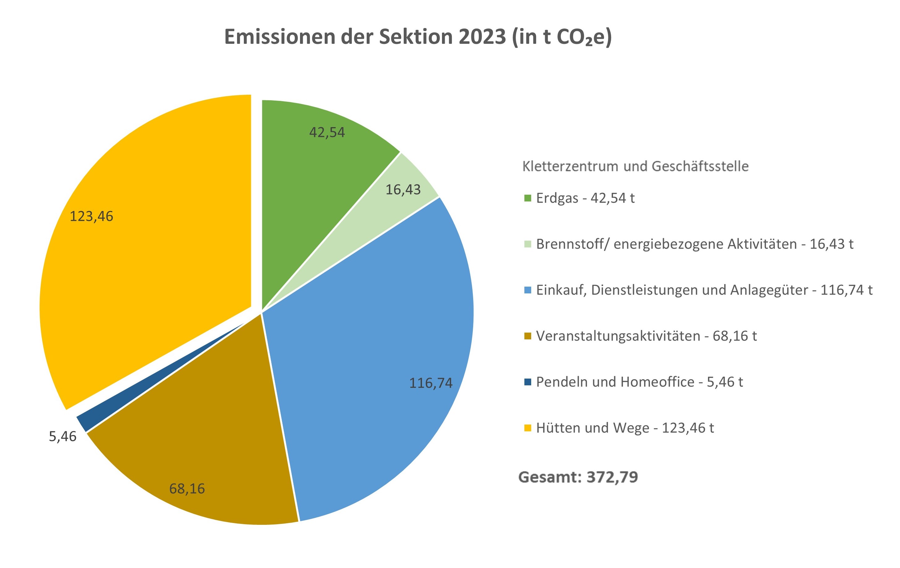 Bei den Aktivitäten unserer Sektion sind 2023 insgesamt 372,79 t CO₂e entstanden. Pro Mitglied sind das ca. 16,21 kg CO₂e.