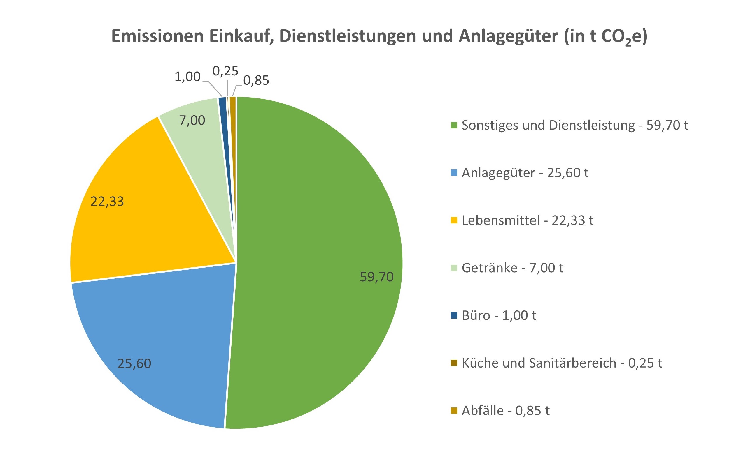 Ebenso umfasst dieser Scope die durch Einkäufe, Dienstleistungen und Anlagegüter entstandenen Emissionen mit 116,74 CO₂e (Genauigkeit: gut).