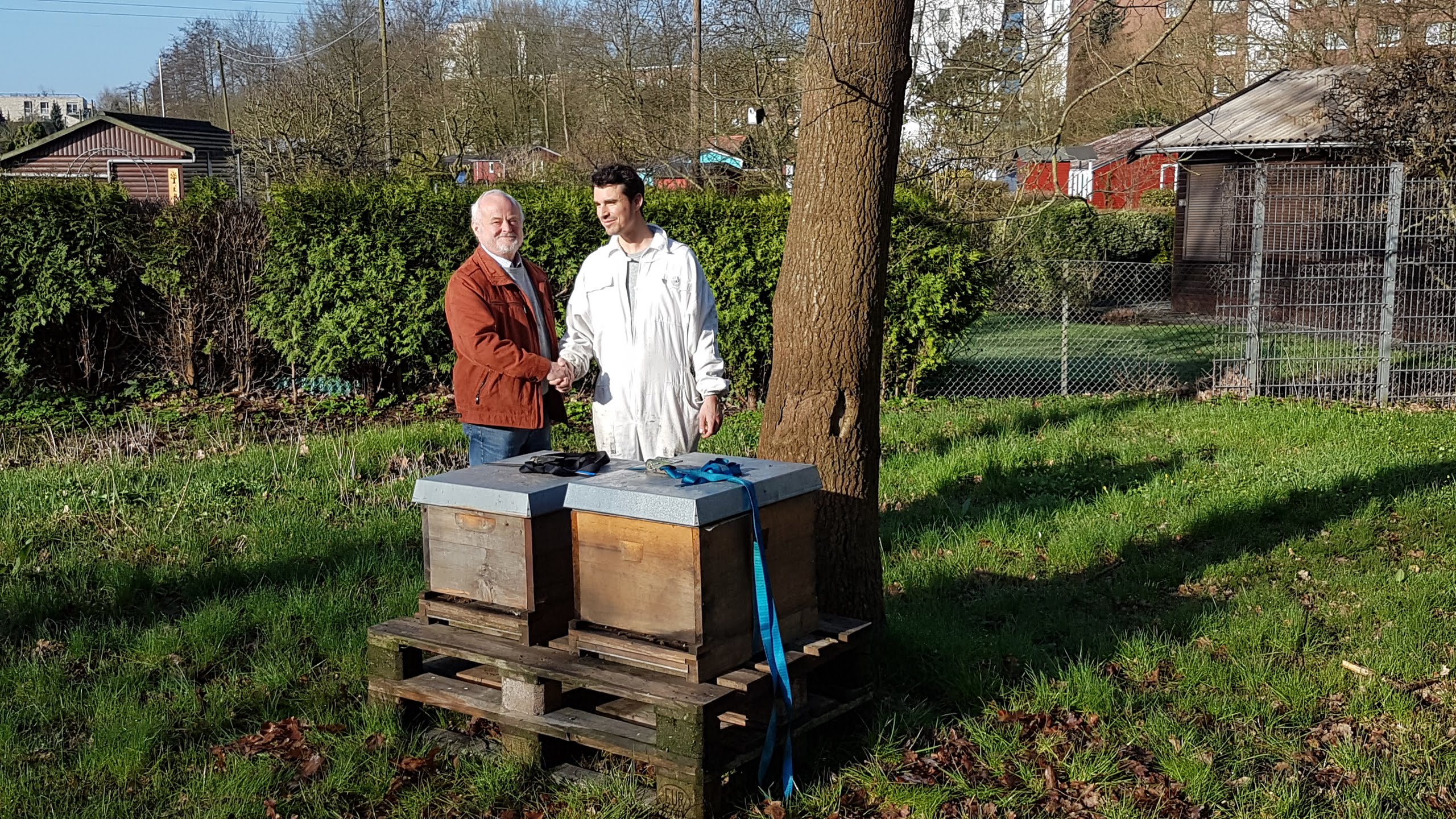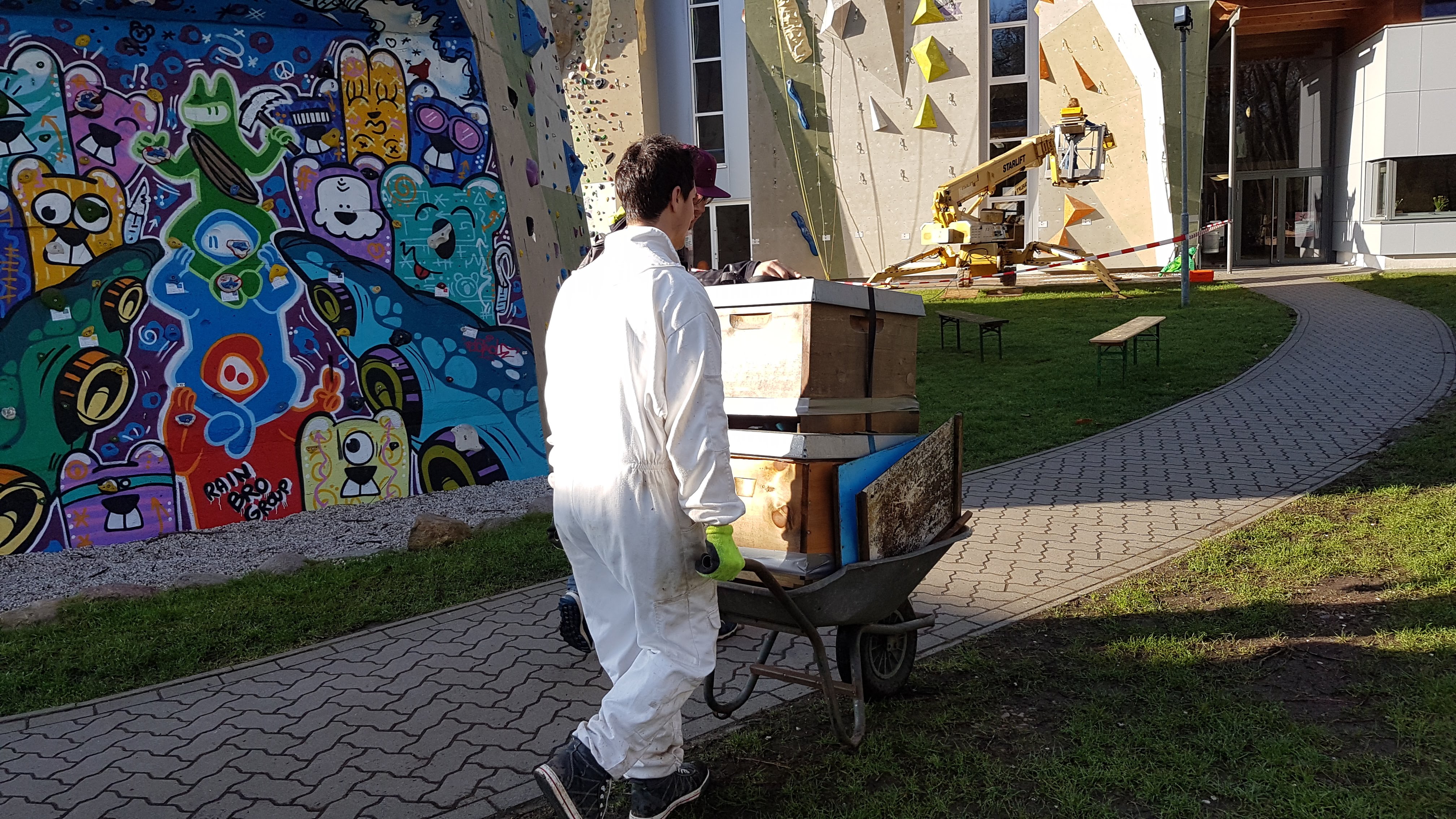 Am 17. April 2018 übergab Bestäubungs-Imker Wolfgang Reuter, Co-Founder des Hamburger Start-ups Bee-Sharing, zwei Bienenvölker an unsere Sektion. Udo Solich, unser Referent für Natur- und Umwelt im Vorstand der DAV Sektion Hamburg und Niederelbe, begleitete den Einzug der zwei Bienenstöcke.